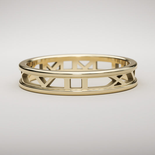 Open Background Custom Date Roman Numeral Ring, 3.5mm wide